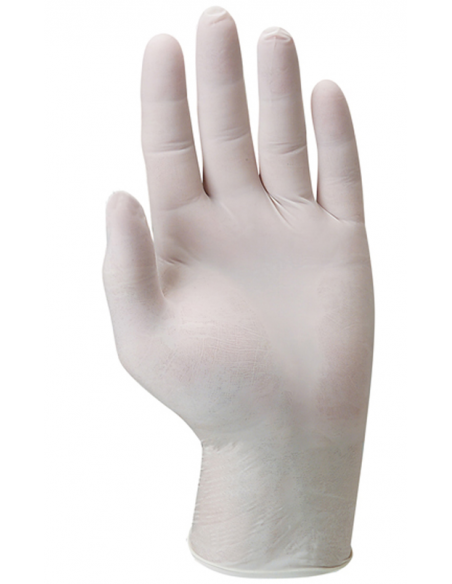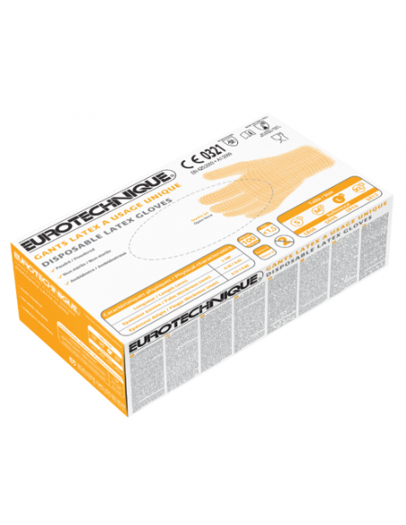 Caja de 100 guantes de látex natural empolvados, 0,125 mm de grosor, puños con dobladillo, NCA: 1,5