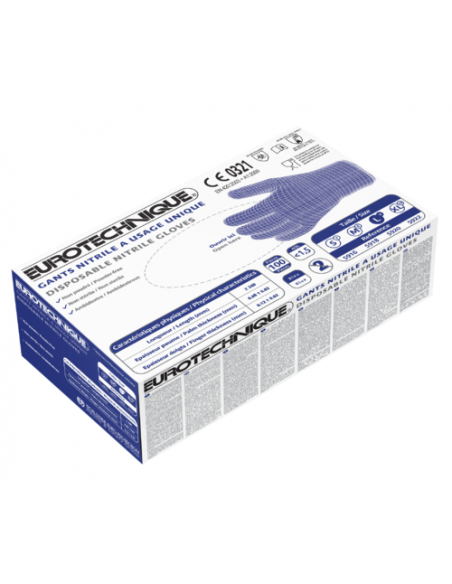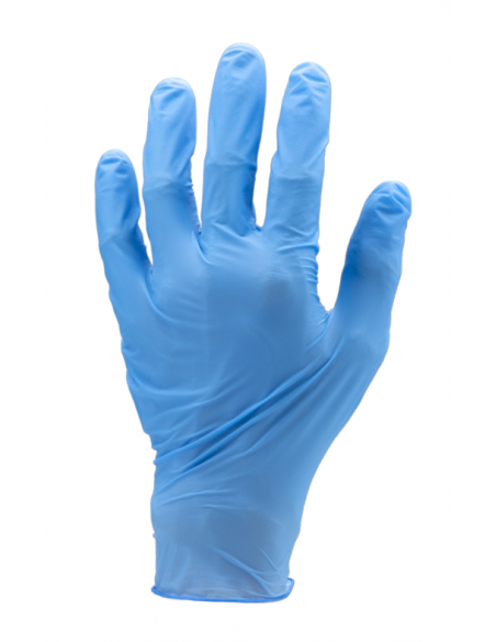Caja de 100 guantes de nitrilo azul, sin polvo, no estériles, puño con dobladillo de 0,10 mm de grosor, AQL: 1,5