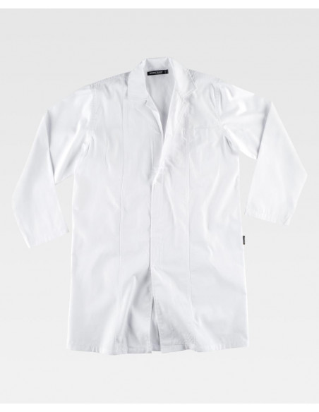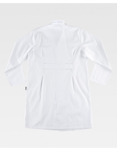 Bata unisex para alimentación. Cuello solapa y cierre central de velcro. Un bolso de pecho de plastón con cierre de velcro en el interior. Costadillos en el delantero, pinzas y cinto en la espalda. Manga larga.